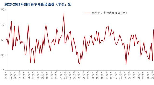 圖4:2023-2024年鋼結構市場情緒走勢圖 數據來源:鋼聯數據